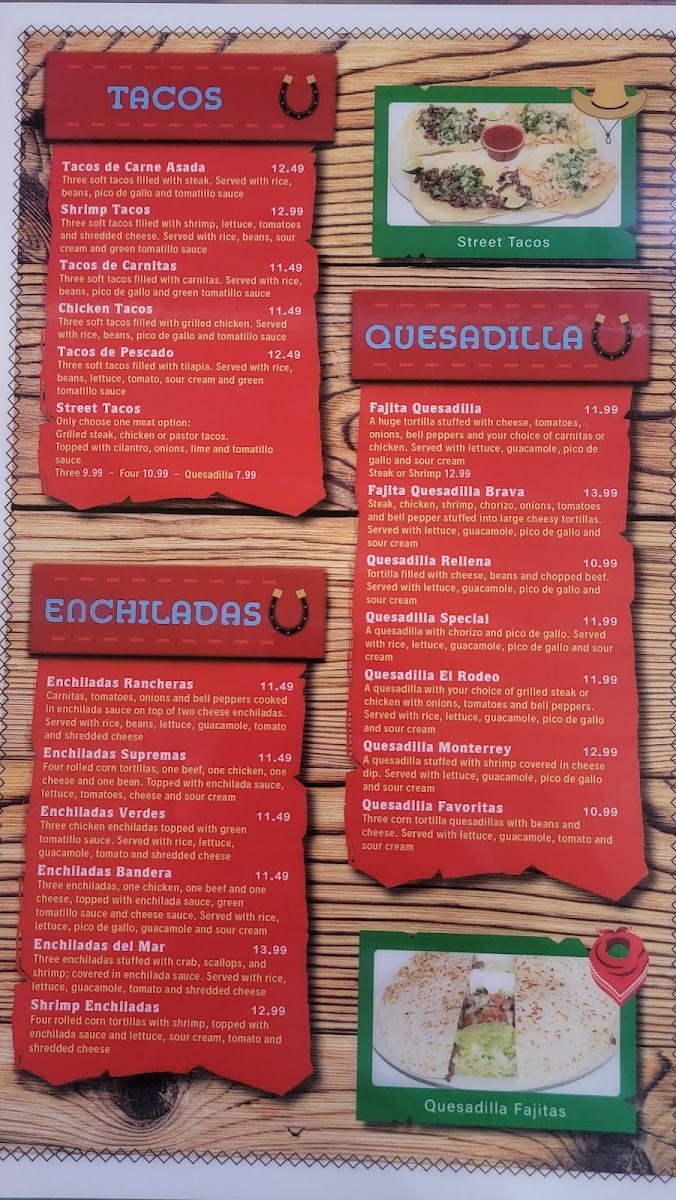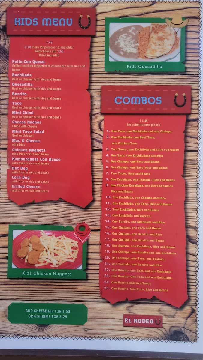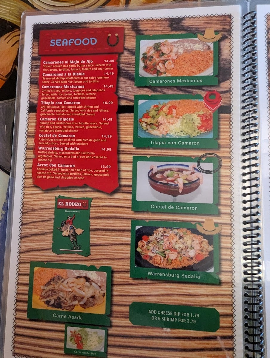 From a reviewer’s perspective, the menu at El Rodeo Mexican Restaurant on 1400 S Limit Ave in Sedalia offers a delightfully broad selection of classic Mexican favorites that cater to a wide range of tastes and appetites. The menu features hearty Vegetarian options like G. Veggie Enchiladas and E. Garden Quesadilla alongside sizzling Fajitas such as Fajitas Bravas and Fajita Tropicana, plus seafood plates like Camarones Al Mojo De Ajo and Arroz Con Camaron, all of which showcase the restaurant’s generous portions and vibrant flavors. In the “Los Favoritos” section, comforting plates like Speedy Gonzalez and Chile Verde stand out, while the Burritos and Tacos categories offer satisfying staples including Burrito Mexicano and Tacos De Carne Asada. Don’t miss indulgent Home Desserts like Fried Ice Cream or Fluffy Sopapilla, and classic Caldos such as MENUDO for a rich, warming finish. Throughout, the menu balances familiar Tex‑Mex favorites with more adventurous choices, making every visit a flavorful journey.